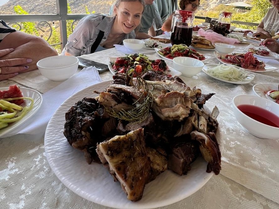 Высоко в горах, там где давление воздуха намного меньше, получается самое вкусное мясо баранины в тандыре. Мясо барашка запекают в огромных тандырах высотой в человека. Вместо крышек используют большие казаны, для герметичности каждый раз замазывают всё глинной! А для неповторимого вкуса кроме специй добавляют ветки можжевельника. В такой тандыр помещается за раз 3-4 барана, а день на данном перевале съедается до ста баранов! Это связано не только со вкусом, но и с очень приемлемой ценой, на человека приблизительно 10$ выходит.